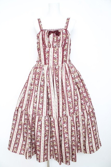 axes femme kawaii / ストライプローズ柄ジャンスカ M ワイン Y-26-02-11-074-AX-OP-SZ-ZY [戻る]
