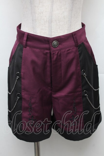 NIBBLE POISON / 刺繍バイカラーショートパンツ 黒xワイン S-26-02-10-063-0-PA-HR-ZS [戻る]