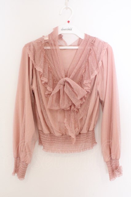 axes femme POETIQUE / チュールブラウス M ピンク O-26-02-10-035-AX-BL-OW-OS