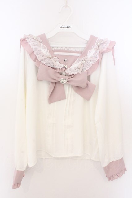 DearMyLove / ハートリボンたっぷりフリルセーラーブラウス M シロ×ピンク O-26-02-10-047-EL-BL-OW-OS