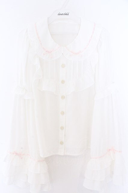 Ank Rouge / ひめ袖はしごリボンブラウス M シロ×ピンク O-26-02-10-063-CA-BL-OW-OS
