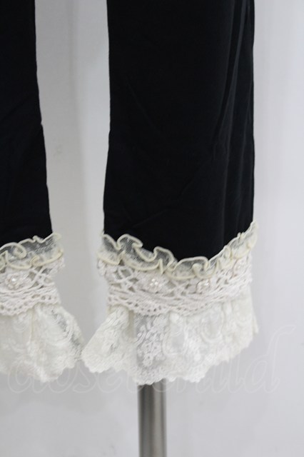 axes femme / カギ針使い七分丈スパッツ 黒X白 I-26-02-11-089-AX-PA-SA-ZI