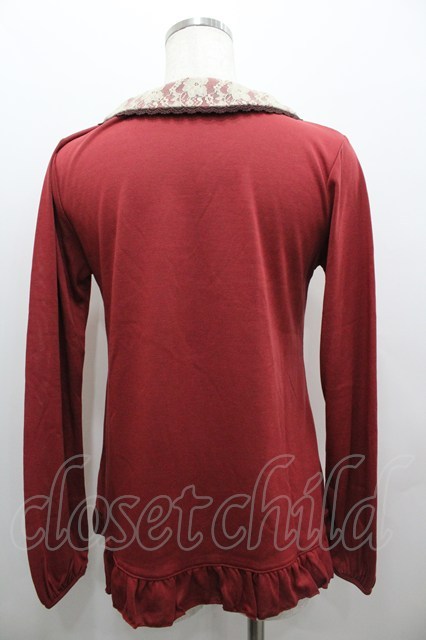 axes femme / 衿付きプルオーバー ボルドーXアイボリー I-26-02-11-024-AX-TO-SA-ZI