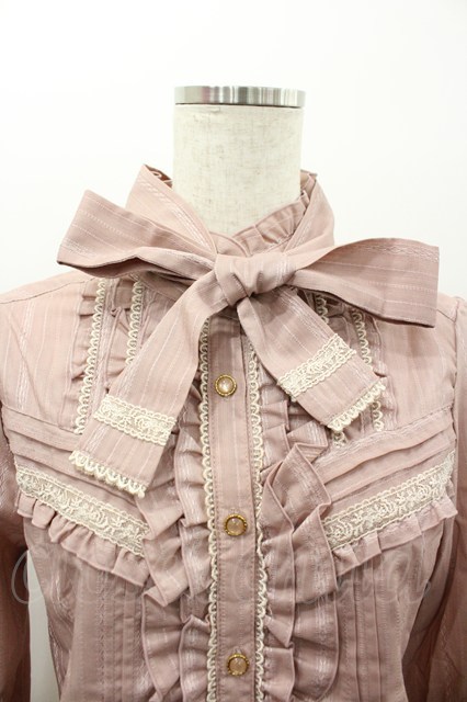 axes femme / ボウタイ付き長袖フリルブラウス L ピンク I-26-02-11-002-AX-BL-SA-ZI