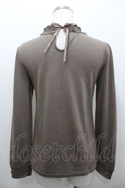 axes femme / ブローチ付スタンド襟PO M モカ I-26-02-11-012-AX-TO-SA-ZI