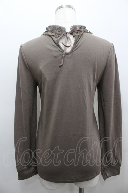 axes femme / ブローチ付スタンド襟PO M モカ I-26-02-11-013-AX-TO-SA-ZI