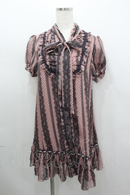 axes femme / レース柄ワンピース ピンクX黒 I-26-02-11-120-AX-OP-SA-ZI