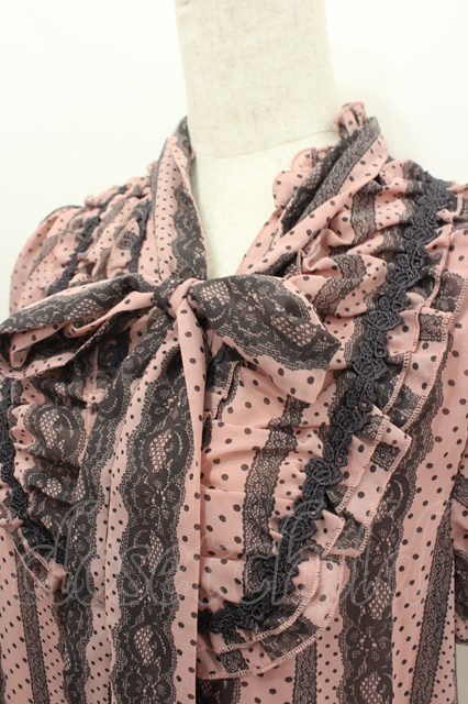 axes femme / レース柄ワンピース ピンクX黒 I-26-02-11-120-AX-OP-SA-ZI