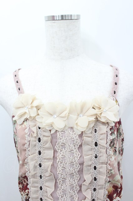 axes femme / 薔薇プリント&胸元フラワーモチーフジャンパースカート ピンク I-26-02-11-102-AX-OP-SA-ZI [戻る]