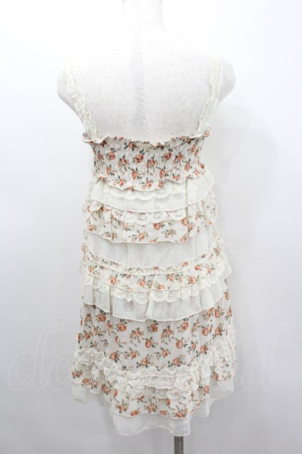 axes femme / ローズプリントフリルシフォンジャンパースカート アイボリーX赤 I-26-02-11-096-AX-OP-SA-ZI