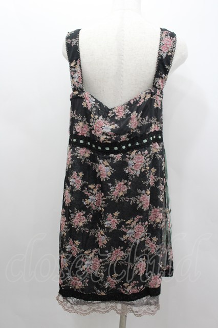 axes femme / フラワーブーケシフォンプリントジャンパースカート 黒Xピンク I-26-02-11-097-AX-OP-SA-ZI
