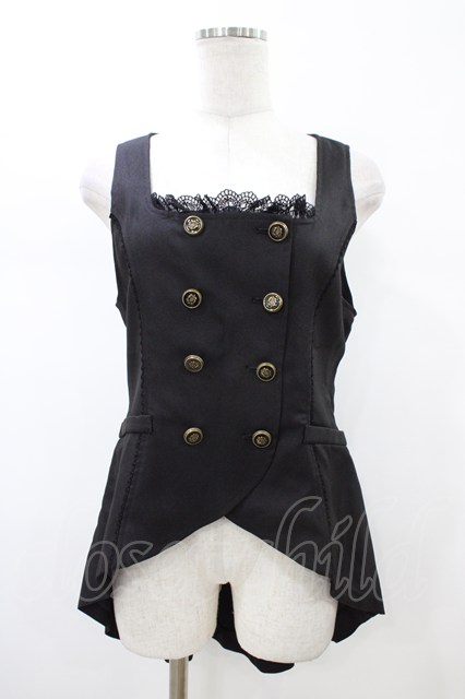 axes femme POETIQUE / ノーカラーロングベスト M ブラック H-26-02-13-1043-AX-TO-NS-ZH