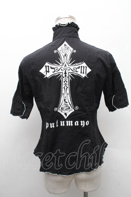 PUTUMAYO / 立ち襟クロスプリント半袖ブラウス 黒x白 S-26-02-11-038-PT-BL-HR-ZS [戻る]