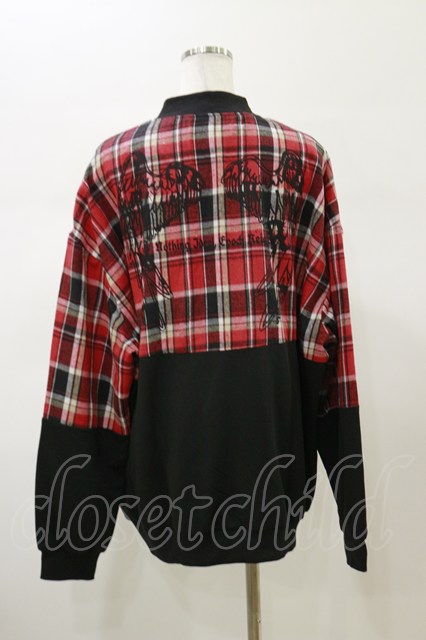 NieR Clothing / チェック切替ZIPジャケット F 黒×赤 H-26-02-13-034-PU-JA-AK-ZH