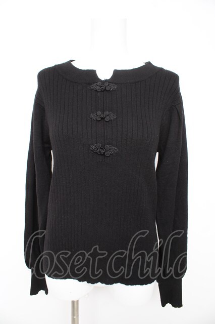 axes femme / チャイナ釦ニットPO F 黒 Y-26-02-13-090-AX-TO-SZ-ZY