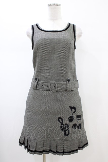 Emily Temple cute / Melodyアップリケベルト付ジャンパースカート ブラック H-26-02-14-1042-ET-OP-KB-ZH