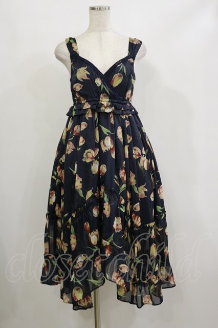 axes femme / チューリップ柄イレヘムワンピース M ネイビー H-26-02-16-045-AX-OP-NS-ZH