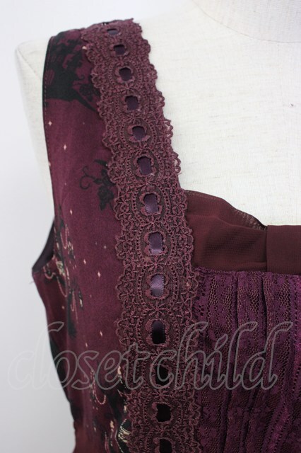 axes femme / 裾2WAYメルヘン柄ワンピース M ワイン T-26-02-17-014-AX-OP-SA-ZT