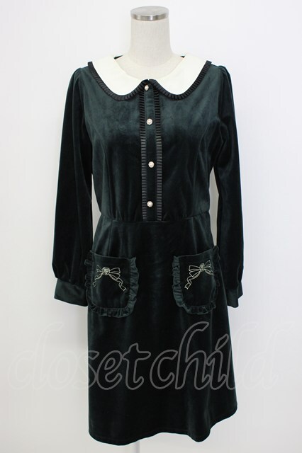 axes femme POETIQUE / ポケット刺繍ベロアワンピース グリーン T-26-02-17-019-AX-OP-SA-ZT