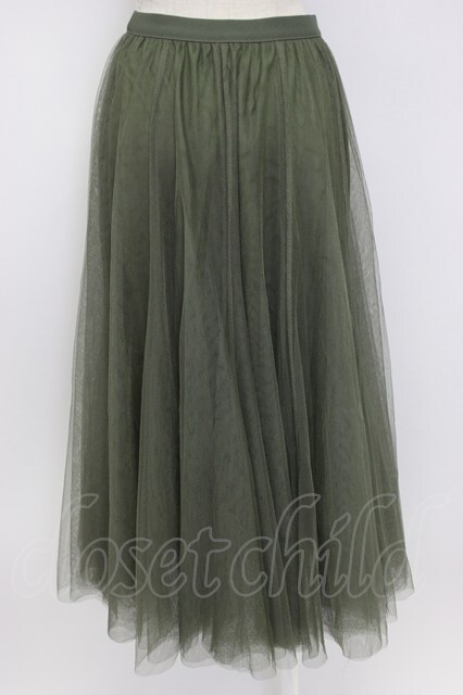 axes femme / ロングチュールスカート カーキ T-26-02-17-028-AX-SK-SA-ZT