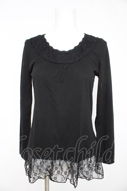 axes femme / レースフリルカットソー M クロ Y-26-02-15-037-AX-TO-IG-ZY