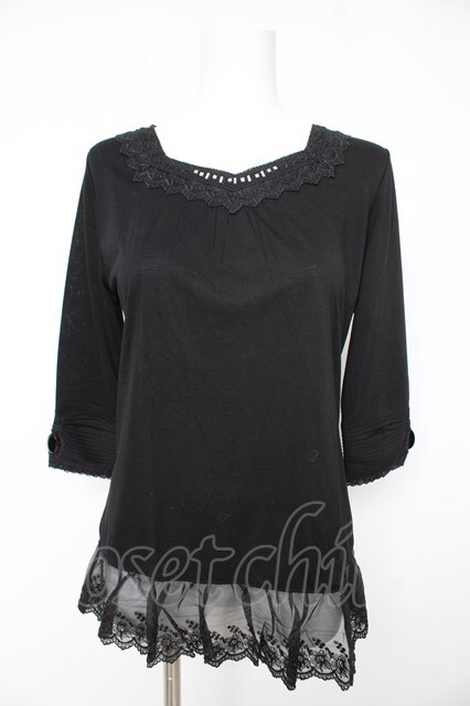 axes femme / 袖口Bigビジューインナープルオーバー M クロ Y-26-02-15-043-AX-TO-IG-ZY