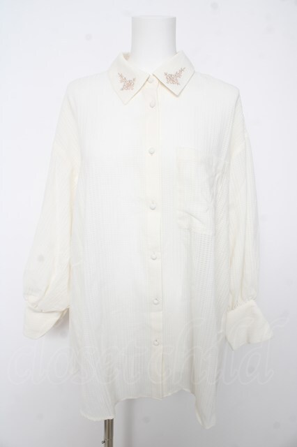 axes femme / 襟刺繍シアーチェックシャツ F 生成り Y-26-02-15-102-AX-BL-SZ-ZY