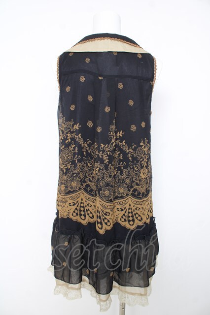axes femme / レース柄ボウタイチュニ M 紺 Y-26-02-15-174-AX-OP-SZ-ZY
