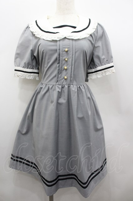 Amavel / リボン付きフリルセーラーカラー半袖ワンピース グレーX白 I-26-02-13-077-CA-OP-SA-ZI [戻る]
