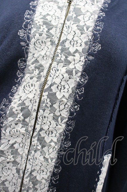 axes femme / レース配色ZIPパーカー ネイビーX白 I-26-02-13-033-AX-TO-SA-ZI