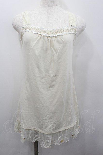 axes femme / 裾レースお花ビジューロングタンク アイボリー I-26-02-13-026-AX-TO-SA-ZI