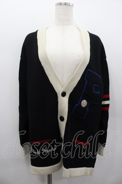 PINK HOUSE / 野球ワッペンVネックカーディガン ブラック I-26-02-13-052-LO-TO-SA-ZI