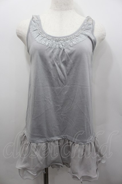 axes femme / 肩透けロングタンク グレー I-26-02-13-021-AX-TO-SA-ZI