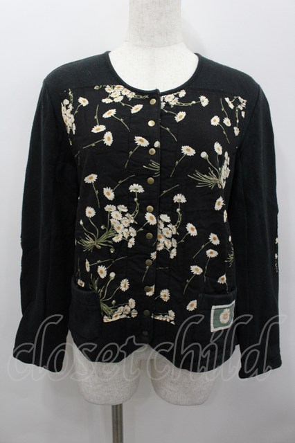 PINK HOUSE / ゼッケン付き雛菊柄カーディガン ブラック I-26-02-13-057-LO-TO-SA-ZI