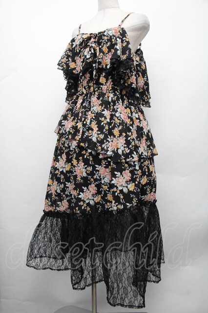 axes femme / フラワーシャワープリントワンピース 黒 S-26-02-13-052-AX-OP-AS-ZS