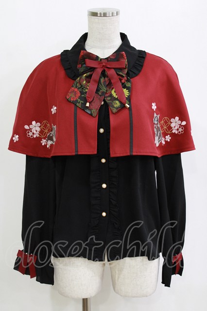 Amavel / 鈴猫みくじの縁結ケープ付ブラウス Free ブラック/レッド H-26-02-18-067-CA-BL-NS-ZH