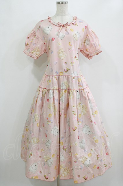 PINK HOUSE / 幸見うさぎプリントティアードワンピース Free ピンク H-26-02-18-013-LO-OP-NS-ZH [戻る]