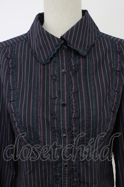 axes femme / タイ付きストライプブラウス ネイビー T-26-02-15-037-AX-BL-SA-ZT