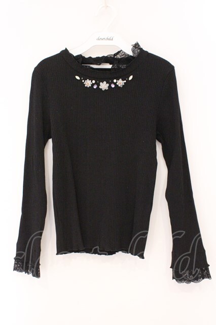 axes femme / 立体花ビジューリブプルオーバー M クロ O-26-02-16-073-AX-TO-OW-OS