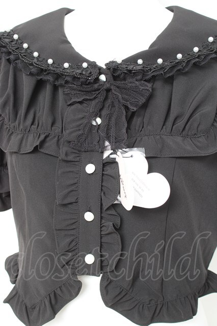 Ank Rouge / コルセットセーラーリボンブラウス M 黒 Y-26-02-17-036-CA-BL-SZ-ZY