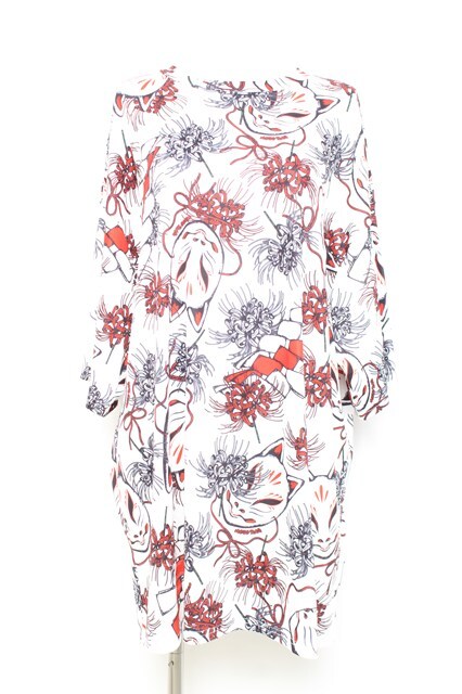 ACDC RAG / 狐面と彼岸花半袖チュニックヒュージTシャツ 白 Y-26-02-17-058-PU-TO-SZ-ZY