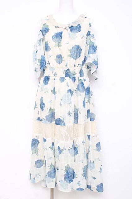 axes femme / 紫陽花柄ロングワンピース F 生成り Y-26-02-17-079-AX-OP-SZ-ZY