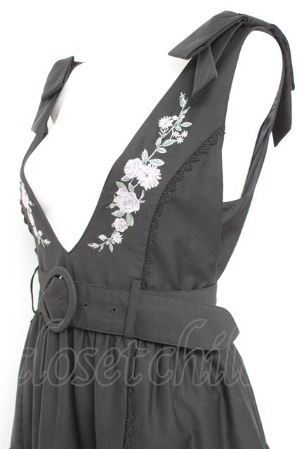 axes femme POETIQUE / 刺繍肩リボンジャンドレ M 黒. Y-26-02-17-083-AX-OP-SZ-ZY