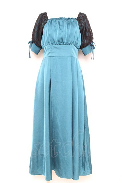 axes femme / レース袖スクエアネックワンピース F Bグリーン Y-26-02-17-108-AX-OP-SZ-ZY [戻る]