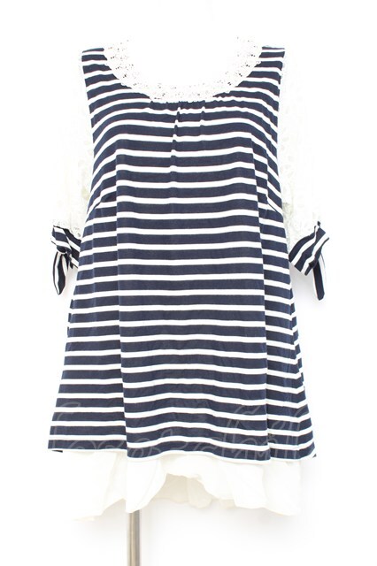 axes femme / Backデザイン半袖チュニ M 紺 Y-26-02-17-116-AX-TO-SZ-ZY