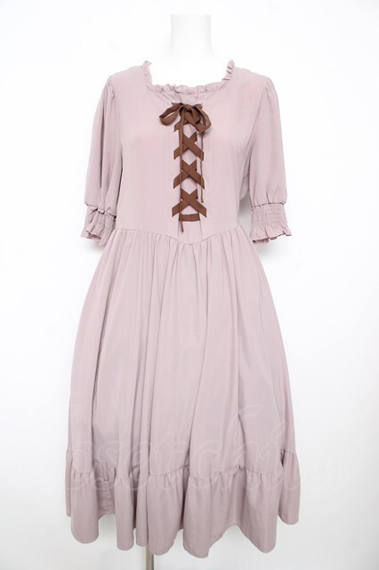 m petit by misako / AMレースアップワンピース L 中桃 Y-26-02-17-162-LO-OP-SZ-ZY