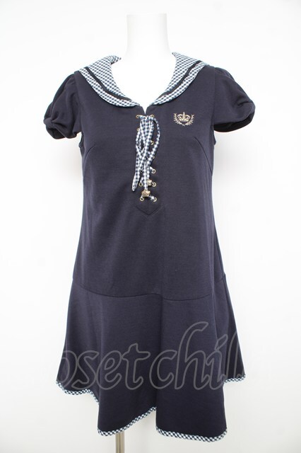 Secret Honey / ギンガムセーラーカットワンピース 2 ネイビー Y-26-02-17-189-CA-OP-SZ-ZY