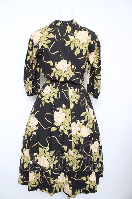 INGEBORG / 薔薇柄半袖開襟ワンピース F 黒 Y-26-02-17-213-LO-OP-SZ-ZY