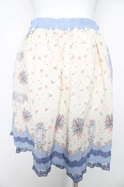 axes femme / 鳥かご×メルヘン柄スカート M サックス Y-26-02-17-240-AX-SK-SZ-ZY