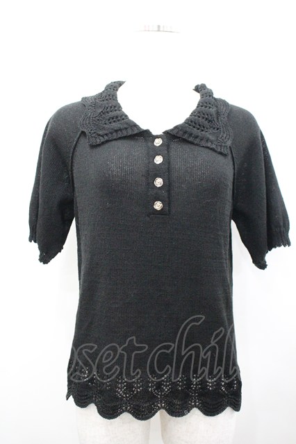 axes femme / 透かし編襟ニットポロシャツ 黒 F I-26-02-15-008-AX-TO-TE-ZI